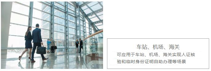 可應(yīng)用于車(chē)站機(jī)場(chǎng)臨時(shí)身份證明辦理、特定場(chǎng)景人證核驗(yàn),酒店自助設(shè)備辦理登記、訪客自助登記、駕??荚嚾藛T信息登記和成績(jī)查詢、食堂人臉消費(fèi),會(huì)議人臉簽到、學(xué)校電子班牌等具體場(chǎng)景。